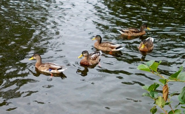 The first time we walked through the park, we laughed as we watched children throwing bread out for the ducks.  There were a few very fast gulls in the mix, and they seemed to nab every morsel.  On enterprising drake grabbed his piece of bread and flew into the air – only to have it wrenched from his beak by an equally air-borne gull.  Drat – score one for the gulls that day.