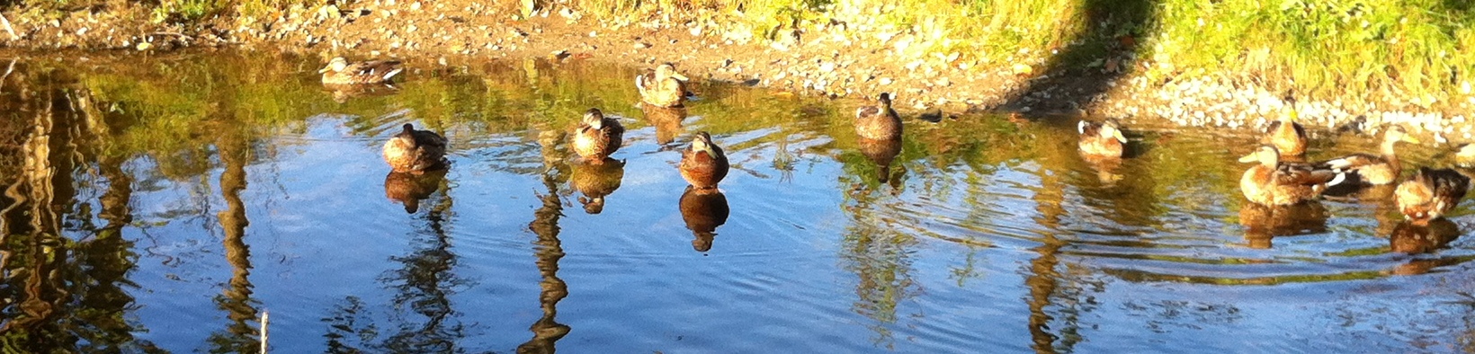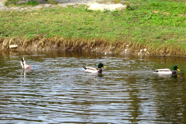 On Sunday we walked along the river all the way to Stokkelandsvatnet (Stokkelands Lake).  At the edge of the pond near our hose, there is a rock that is just off-shore, and ducks like to stand on it.  They even did when it was a couple of inches under water.