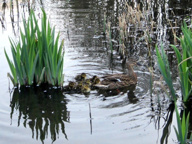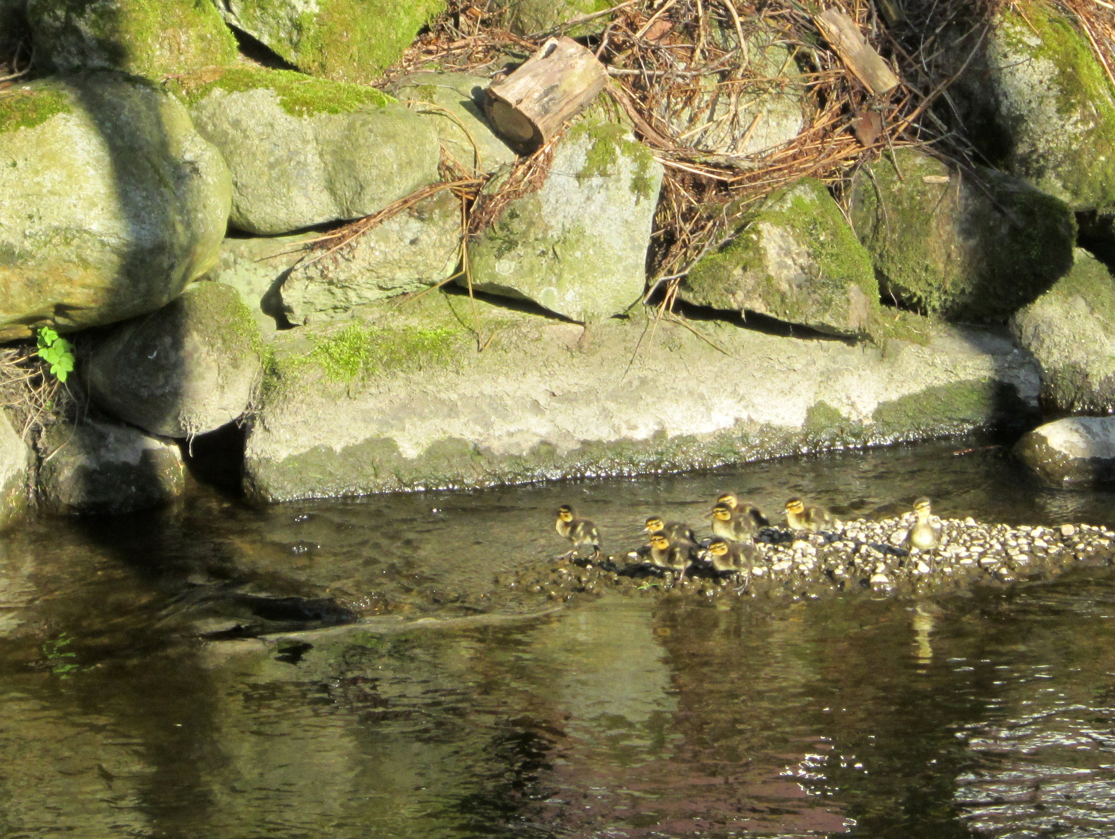 We saw the newly hatch ducklings paddling energetically to keep up with Momma as she headed up stream.  We watched them growing bigger and bigger.  We noticed that there seemed to be no drakes left – ?