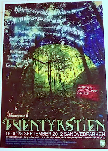 I didn’t know until later that this is what it said: Sandved Park will be transformed again into a magical adventure park. You will not know what’s waiting around the next corner but surely you will experience enchanting fairy tale magic … There are both creepy trolls and elves singing from hidden places. Maybe Puss in Boots will help the princess to find her dream prince? The large Chinese dragon winding along – is it dangerous?