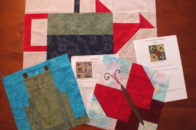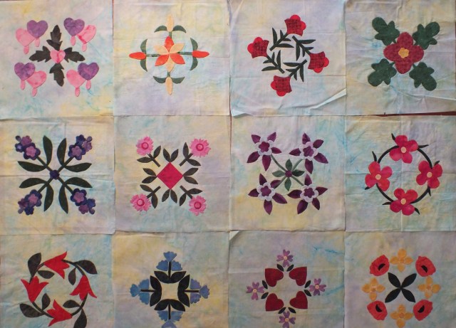 And then there is the Block of the Month that L2Q – LearningToQuilt – sponsored – a garden quilt by Debbie Mumm.  I finished 3 blocks, and then the pressures of the Kuwait Quilt group with an exhibition coming up took over, and I never quite made it back. that was a really multi-national group – it was great, and I regret that I have lost touch with it.  For a while, we had 4 members living in Grande Prairie, and I made some good friends. I met the son of one of the Nova Scotia quilters – he stayed with us for three months, and is one of my “other” sons. Conway was giving oilfield work a try, but the salt water of the Atlantic was in his veins, and he is back fishing and loving it.