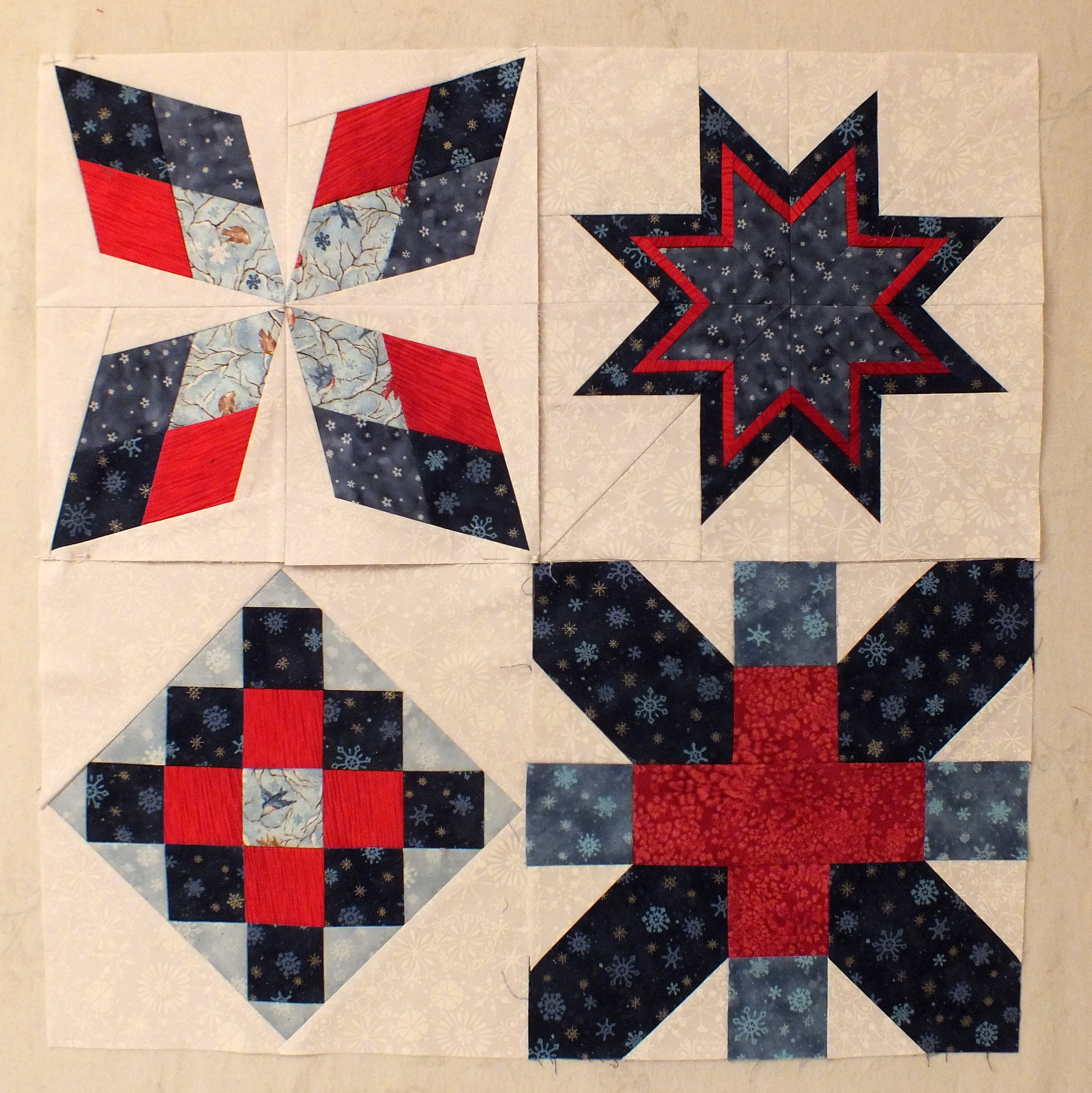 Here are the four blocks we’ve received to date – the beginning of my Norwegian quilt.