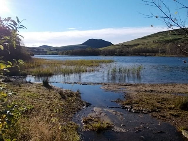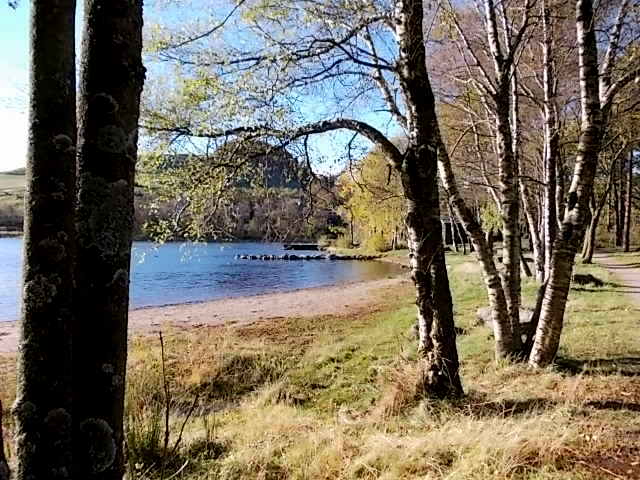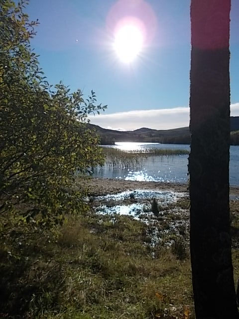 Snoopy found some lovely boggy land to run through, and got gloriously dirty. David had to take off his jacket to wash him in this tiny stream that flowed into the lake.