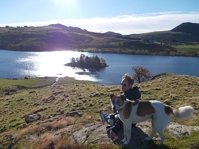 Just south of Sandnes, there is a small lake called Brastein. Vatnet means “the lake”. Snoopy was so excited to be going for a car ride, as he hasn’t been for quite a while, what with David working the whole weekend on his Statistics course.