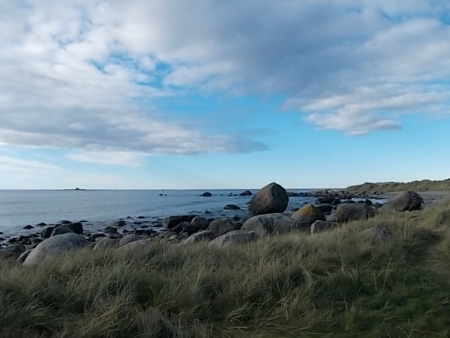 We arrived at Dave’s place (yes, another Dave) in Lye just before 9:30. Wow, does he ever have a great view of Bryne and the sea shore from his from window. Soon, we were on the road, headed to Brusand Beach. The countryside around there is quite flat farmland – a rarity in Norway, where only 4% of the land is arable. The rest is rock and water.