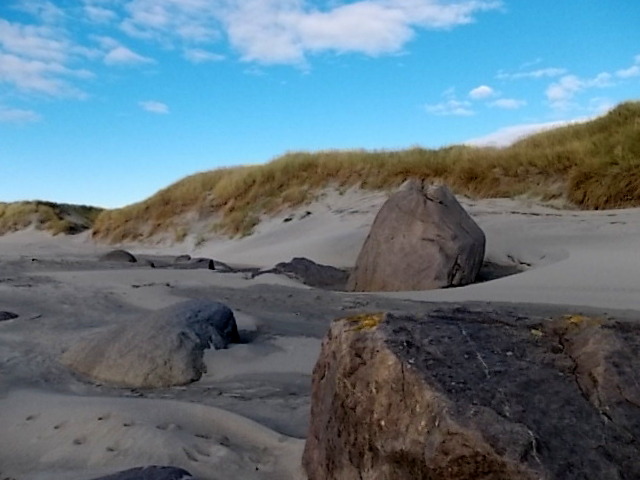 The soft sand on the last leg of the trip did me in, so we retreated to the top of the dune, where there was a nice, hard-packed trail. We went on to Bryne for Chinese food, and home to bed – a nap that turned into a good, deep all-night sleep.