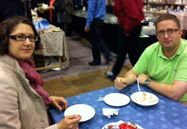 Thanks to my handy GPS, we found the place without any trouble at all. Entering, we were met with a room full of people and tables full of merchandise…..