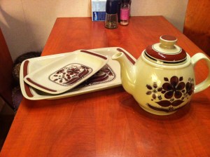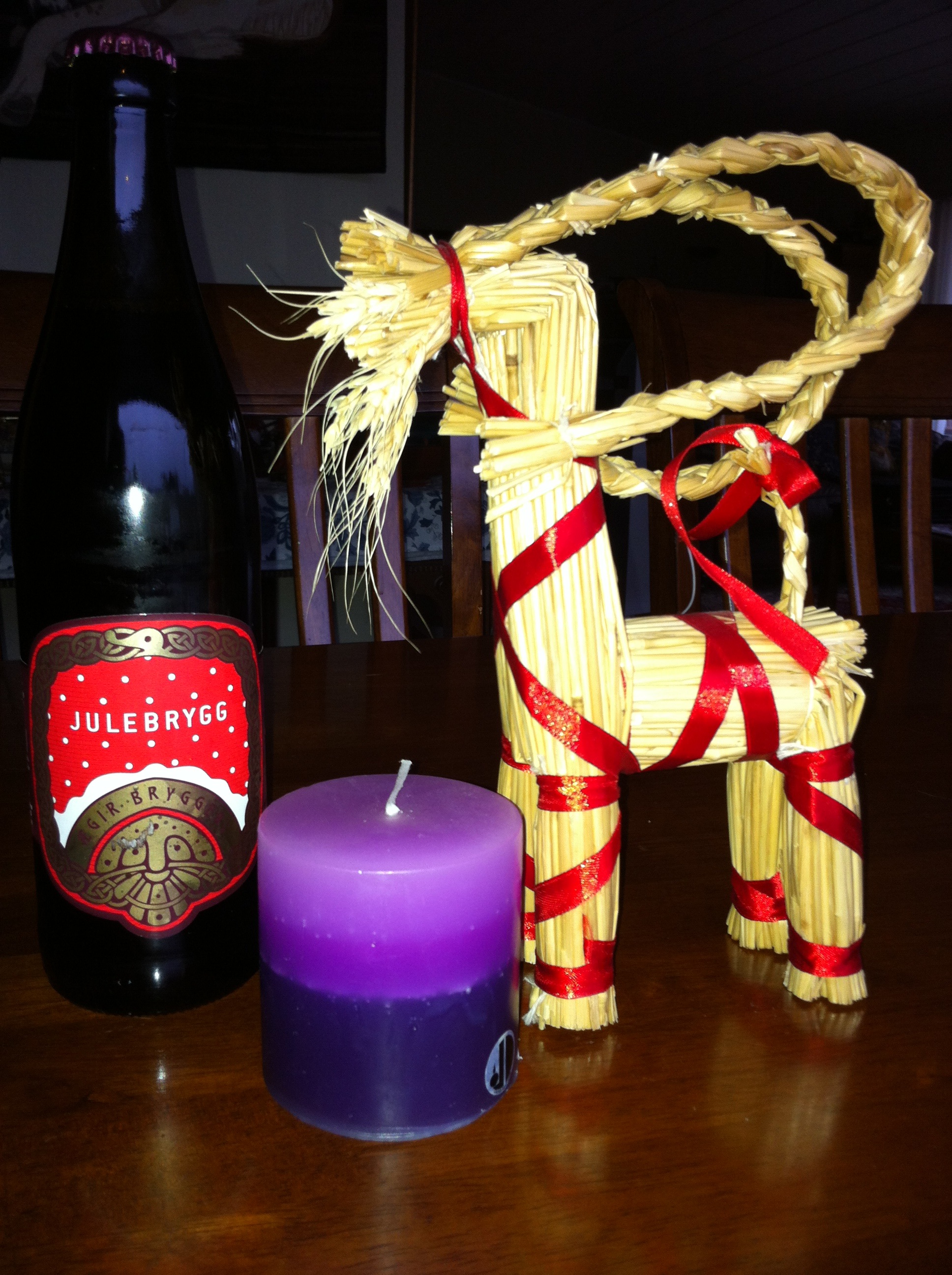After a good breakfast, I went shopping – after all, isn’t that what we women are supposed to do to lift a dark mood?  I went to Fretex, looking for the creamer and sugar bowl that match my Figgjo teapot.  No luck, but I got a straw julebok.  Then I went to the craft shop next door and purchased purple candles for advent, and some supplies to make Christmas decorations.  I had to go to Panduro in the mall to get my steam-a-seam.