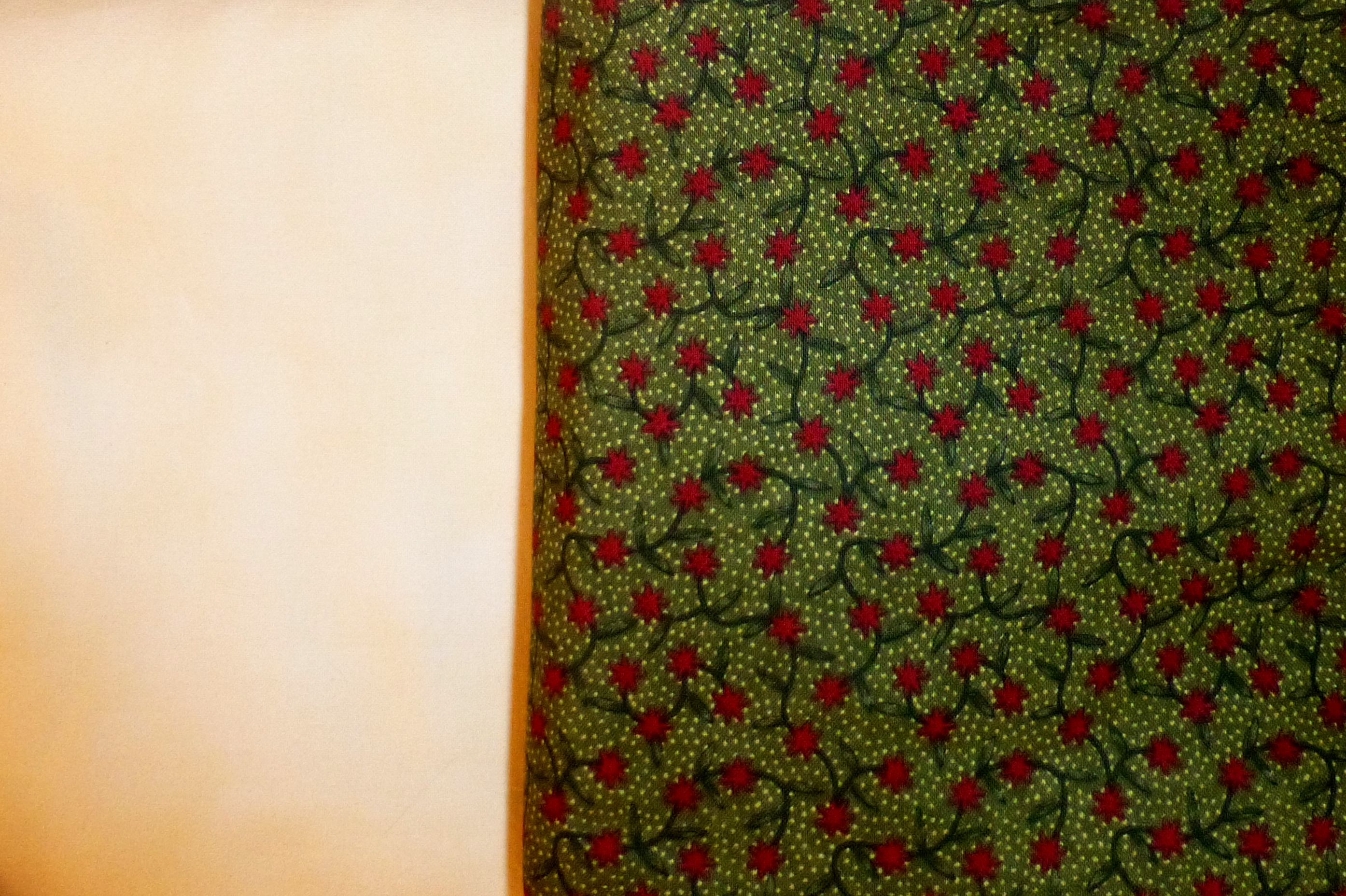 When I took a good hard look at that green print, I discovered that the tiny dots were sort of lime green, not yellow. I found a perfect match, and one that had some life to it. from iPhone Still – the red, or the green.