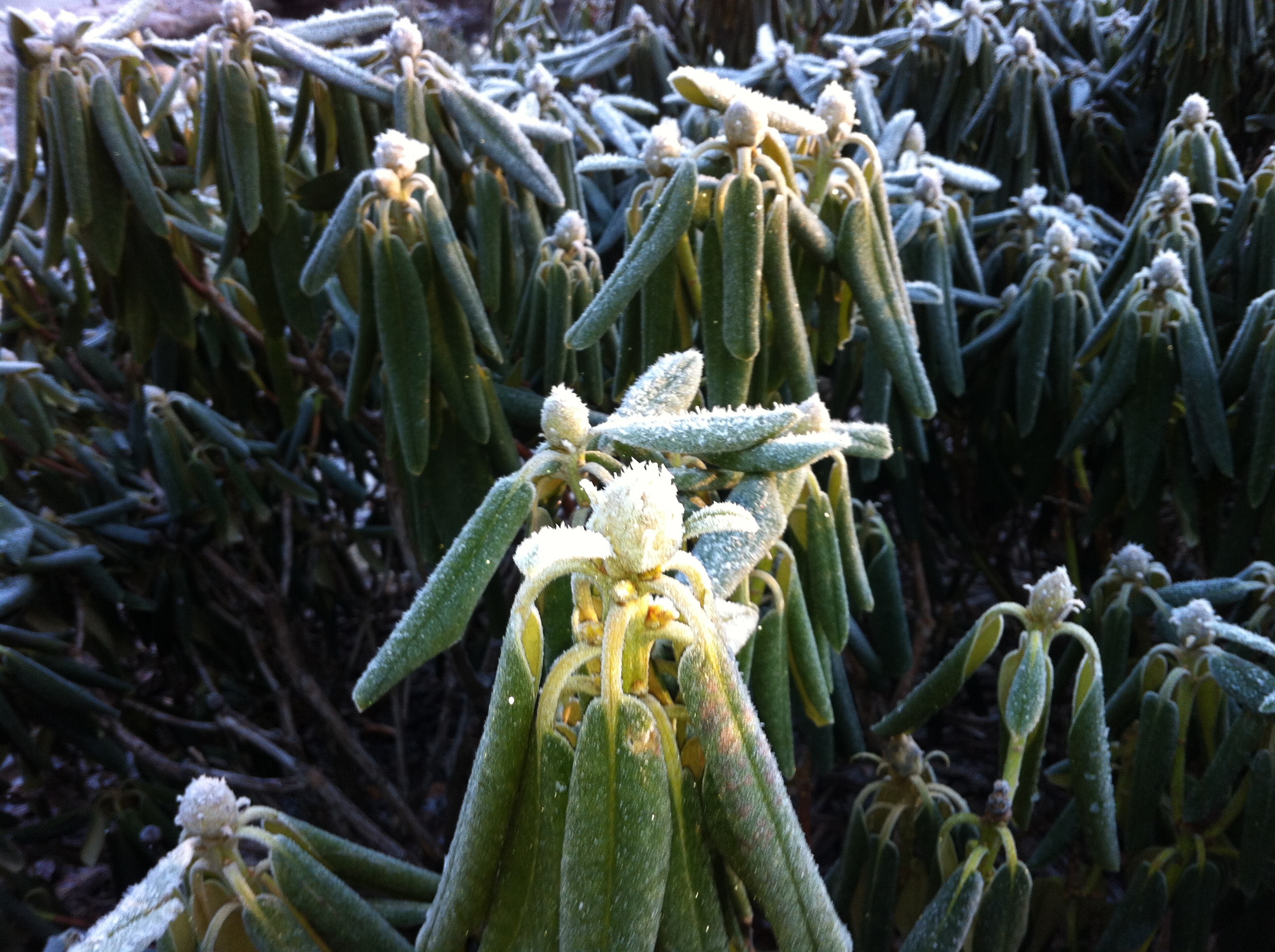 The frozen leaves on the rhododendrons rustled like silken dresses