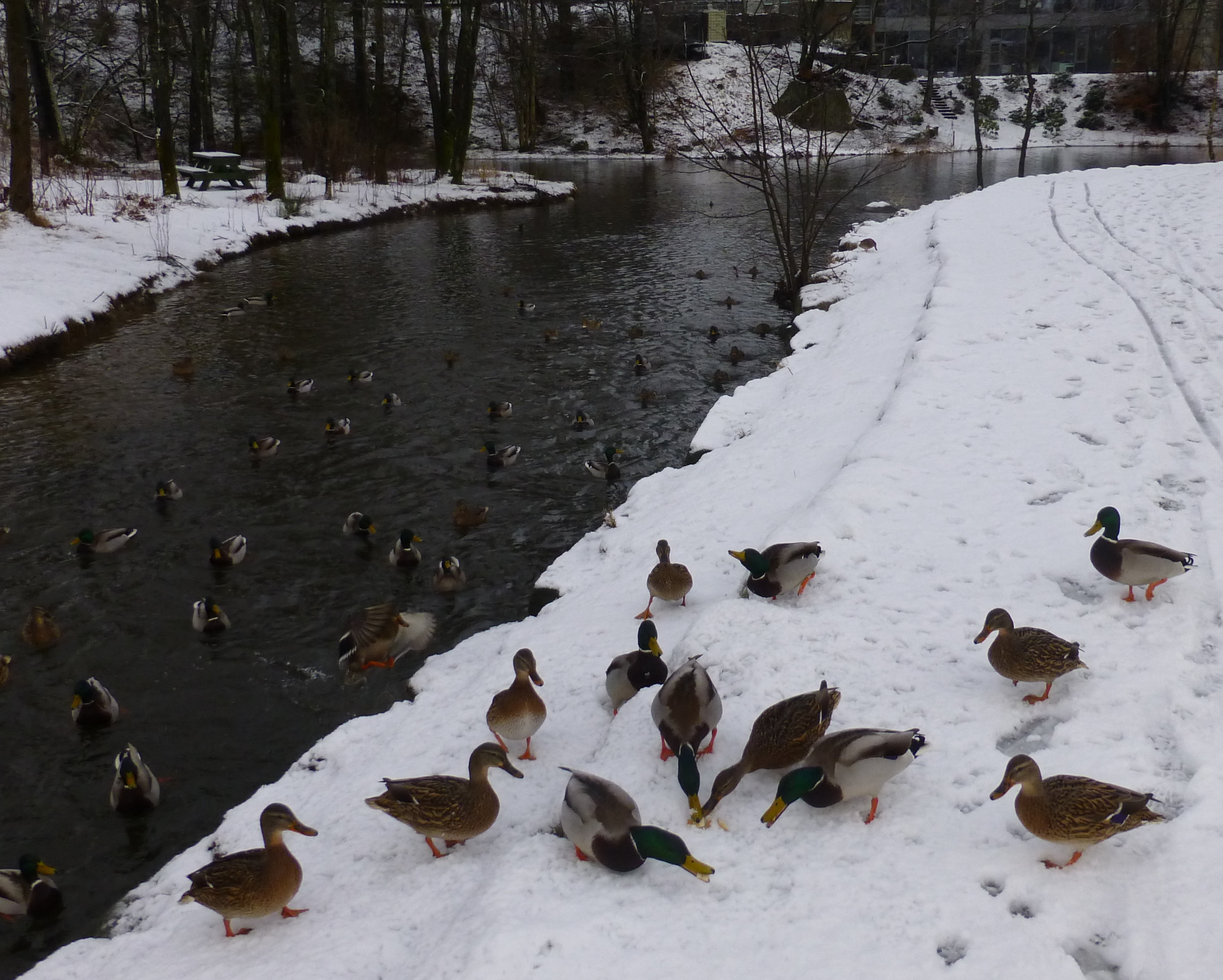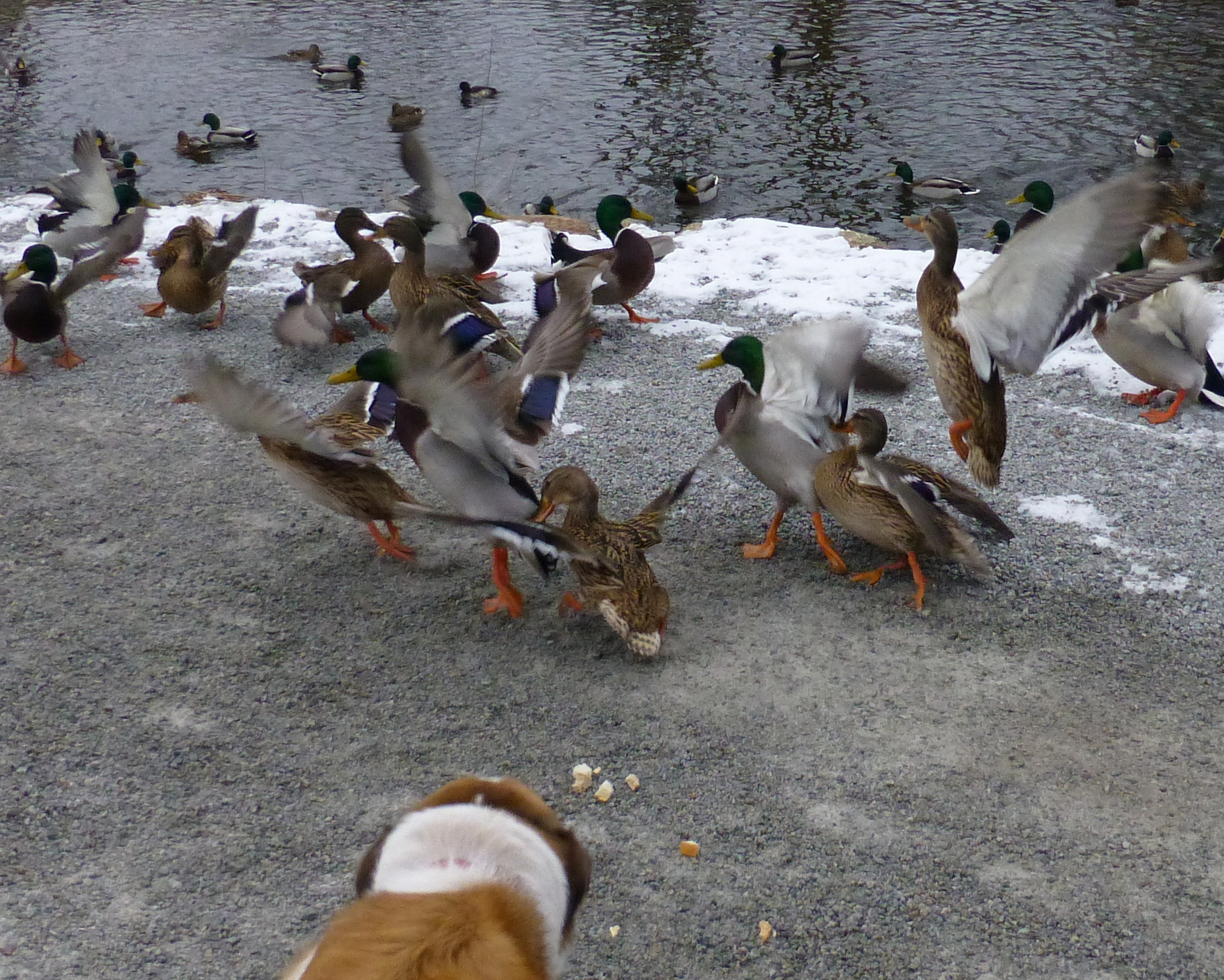 These silly ducks were even coming up on the path, just in case they would have a better chance at close range.  P1020720They weren’t even all that concerned about the dog in their quest for food.