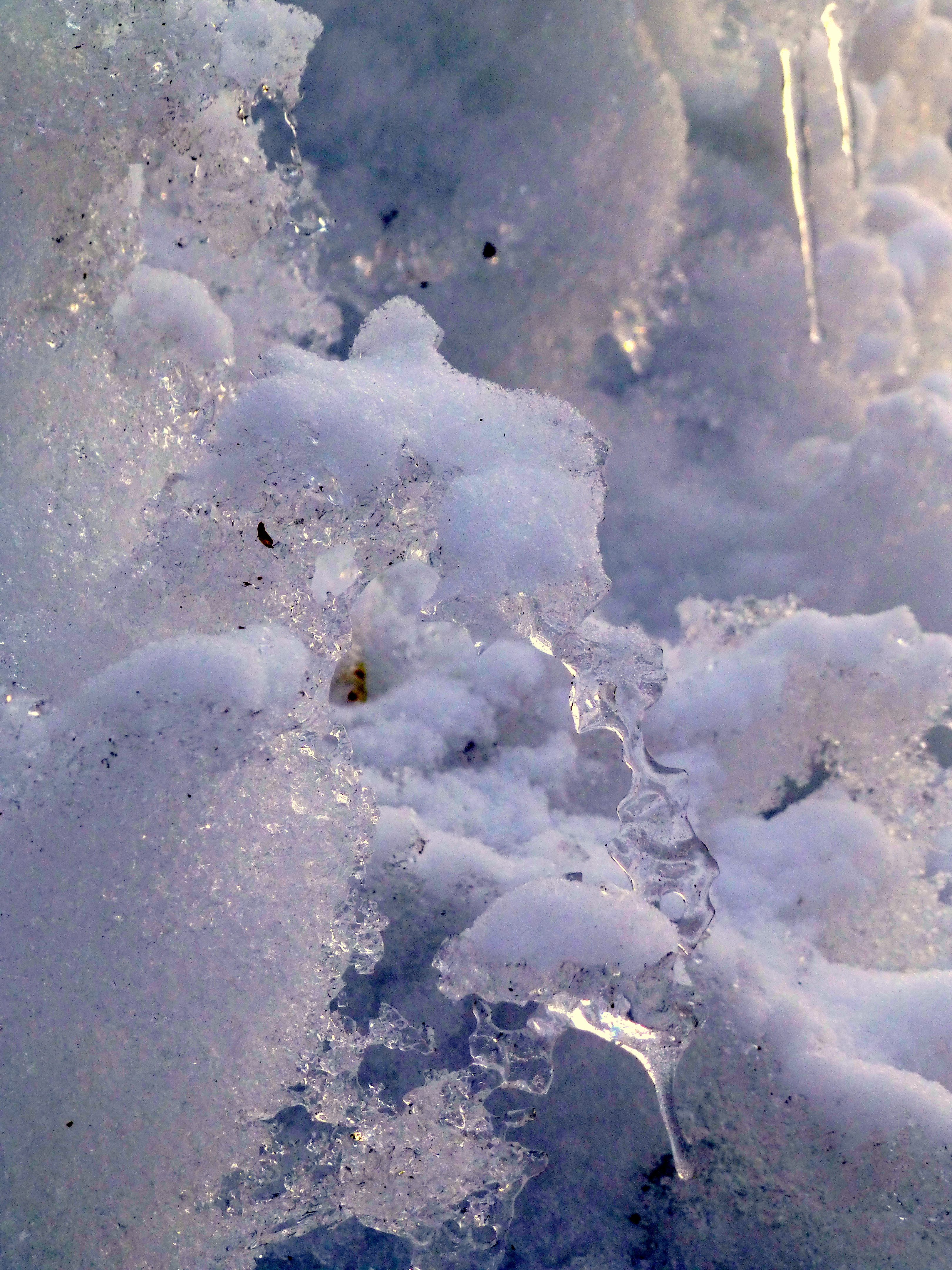 And the snow banks are melting – I love the lacy pattern of the ice –