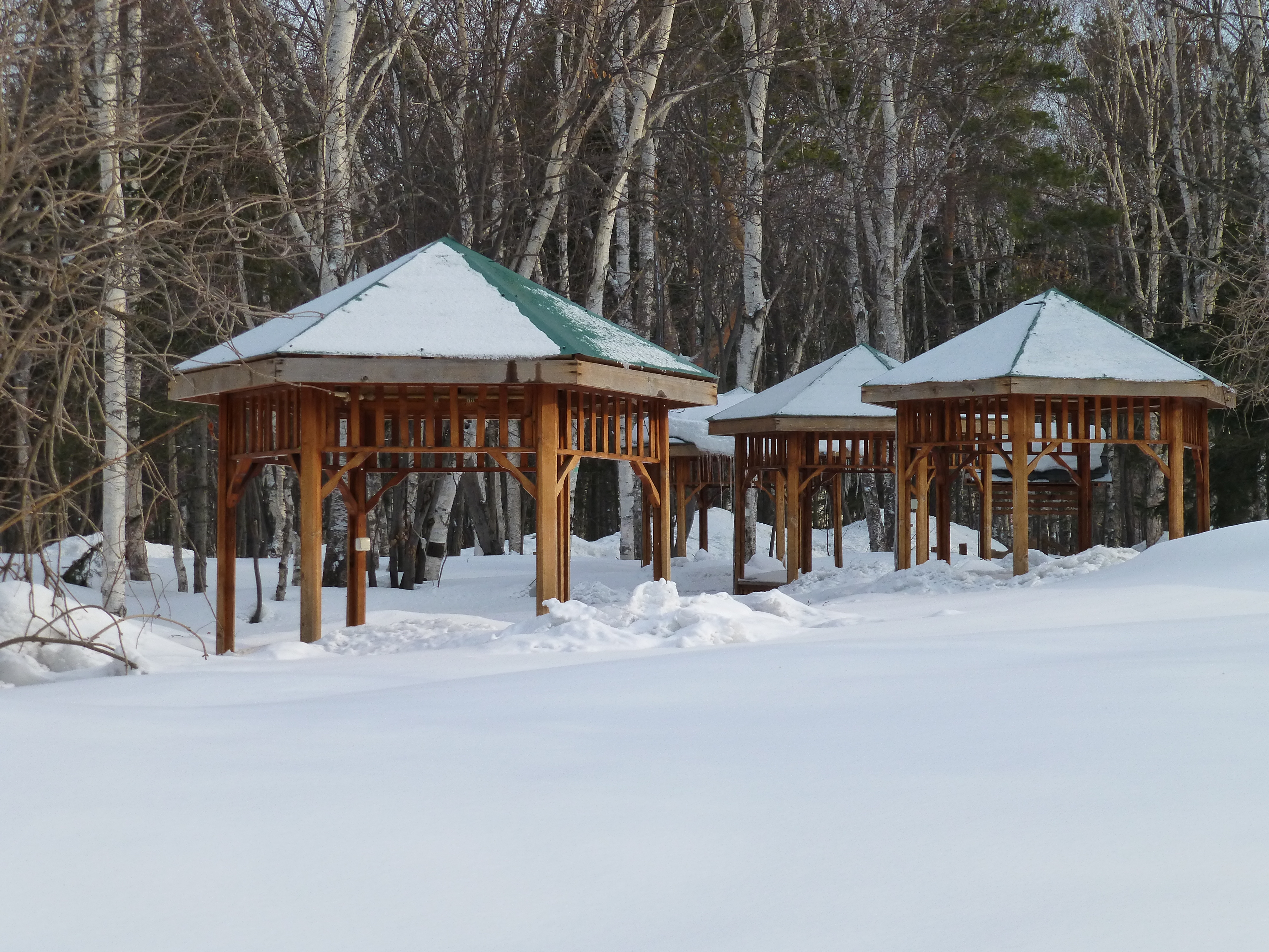 Gazebos that will wait a while before being used again – the camera is at eye level –