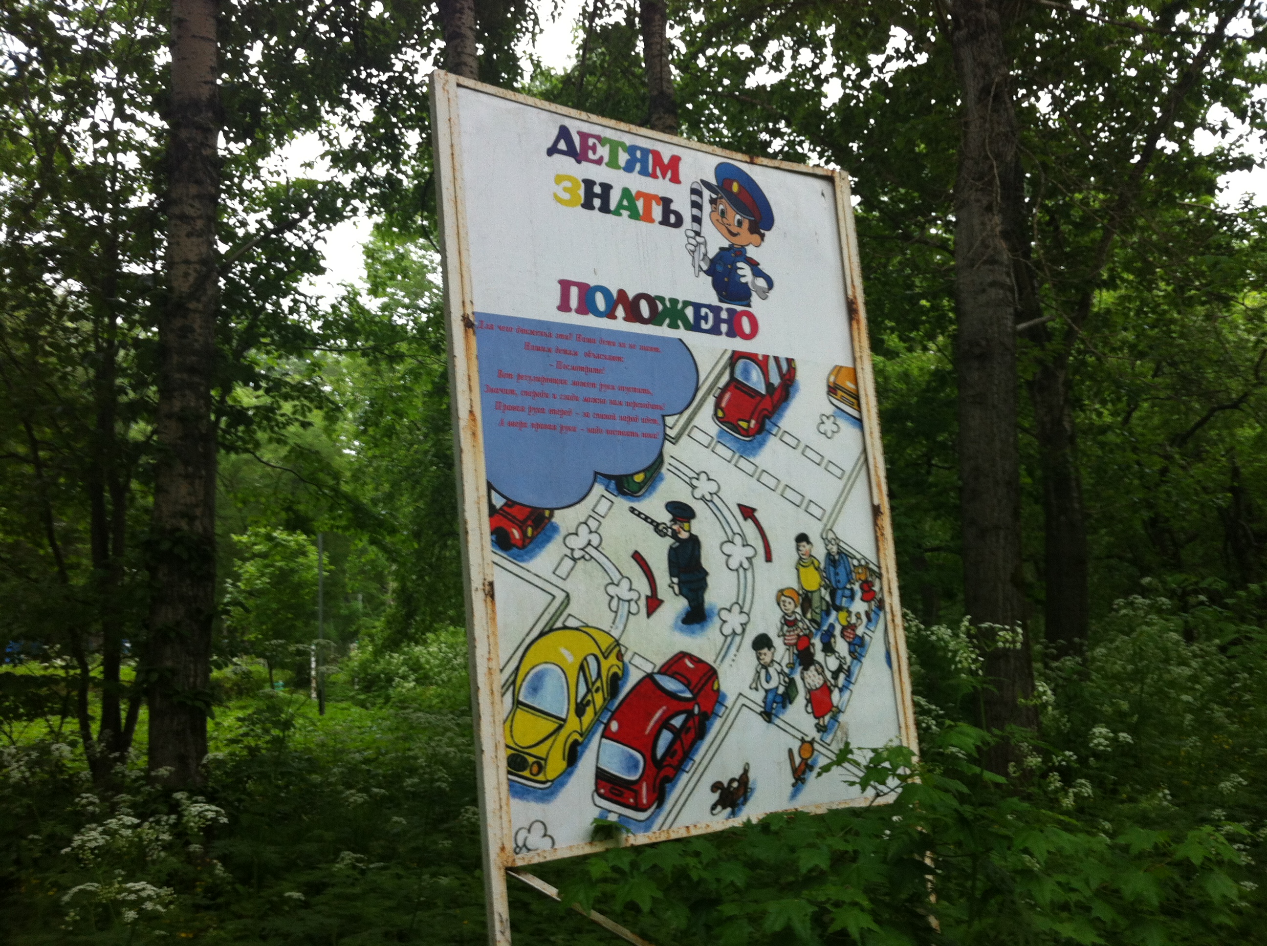 There is a part in the park that seems to be designed to teach children about the rules of the road, including signs and road markings. There are all sorts of road signs, crosswalks, bus stops, and even a round=about and a train crossing.