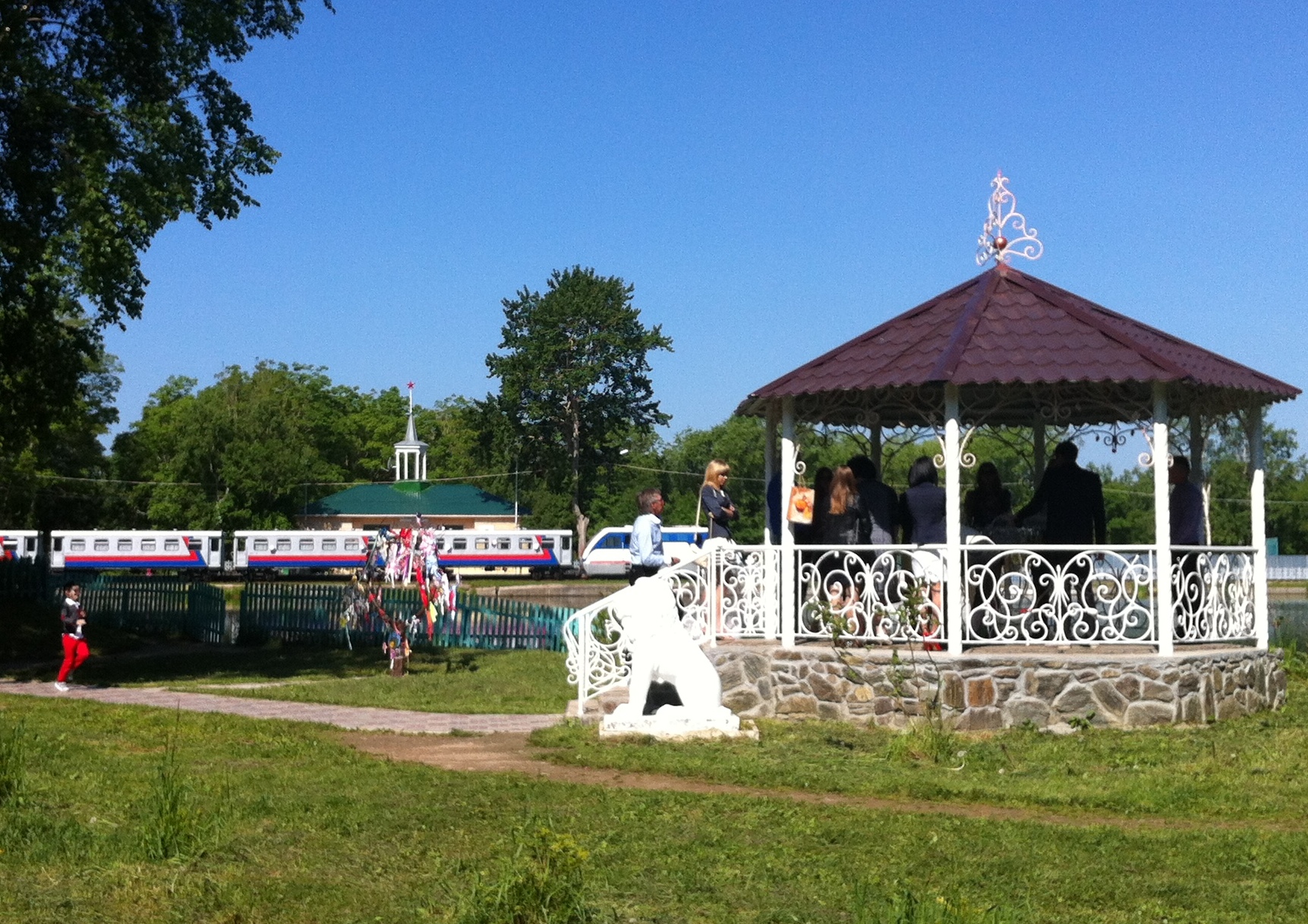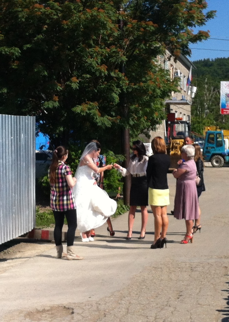 It was waiting for it’s first compliment of passengers when we passed by. Tickets are only one ruble (about 3.5 cents). There was a wedding party close by –