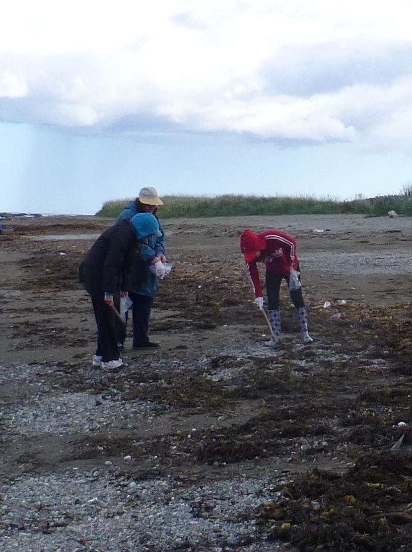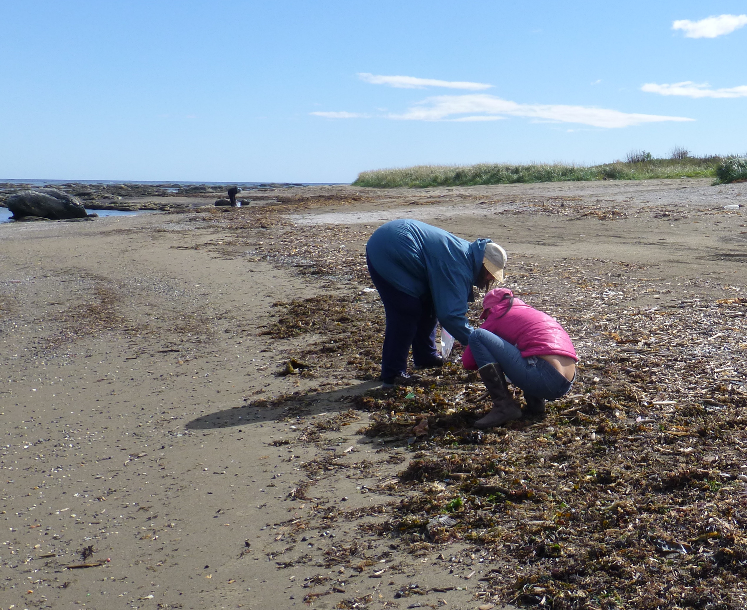 Back to the reason for the trip – to find amber, you must dig through the lines of seaweed and sticks and stones that the tide has left behind.  it is good stretching exercise for the back of your legs, that’s for sure.  A short stick is good for picking through the debris.  When the sun is shining, the bits of amber shine like tiny lights.