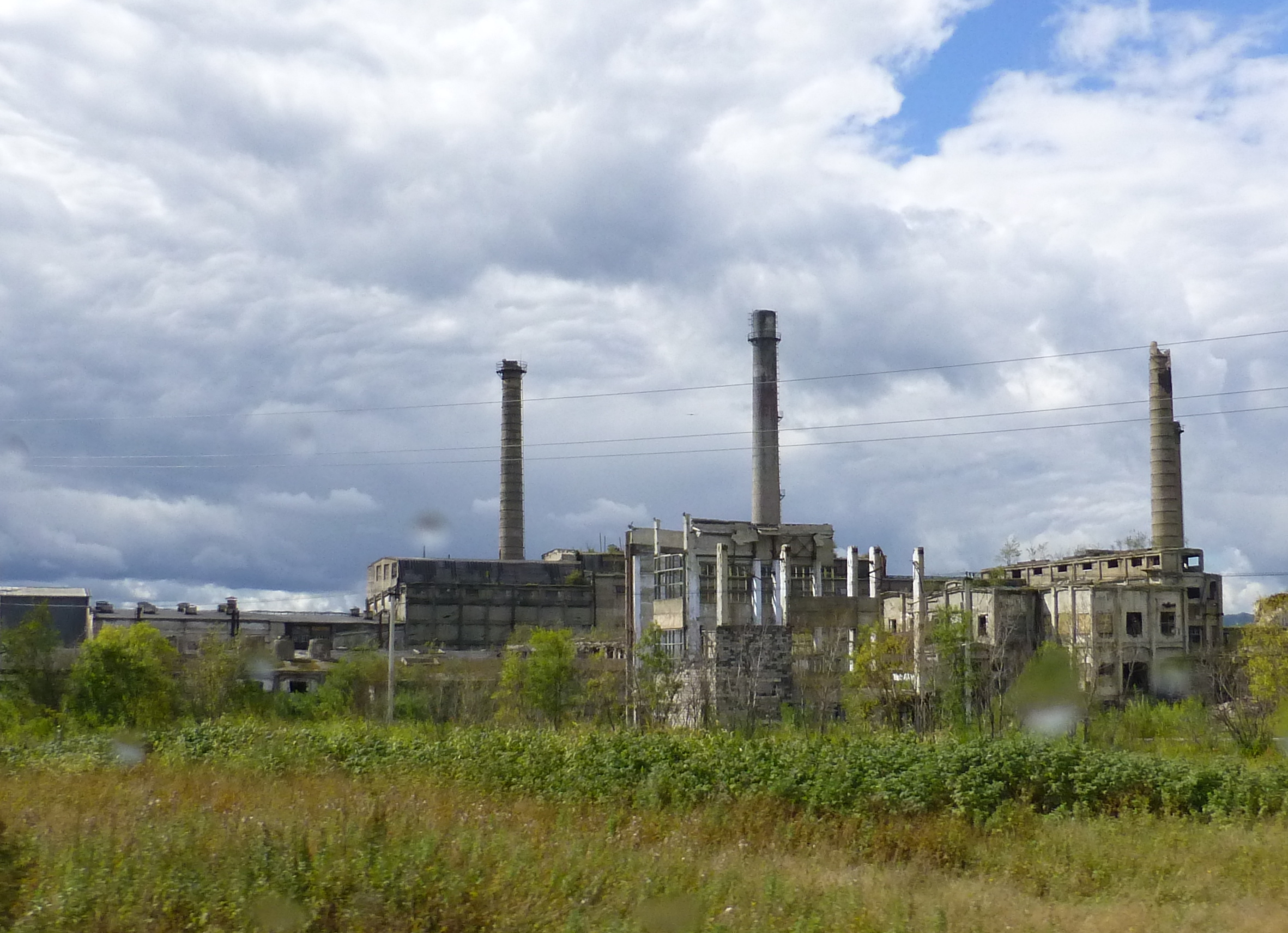 As the storm clouds started to gather again, we packed back into the cars and headed home.  Along the way, we passed this abandoned Japanese pulp and paper mill –P1060861