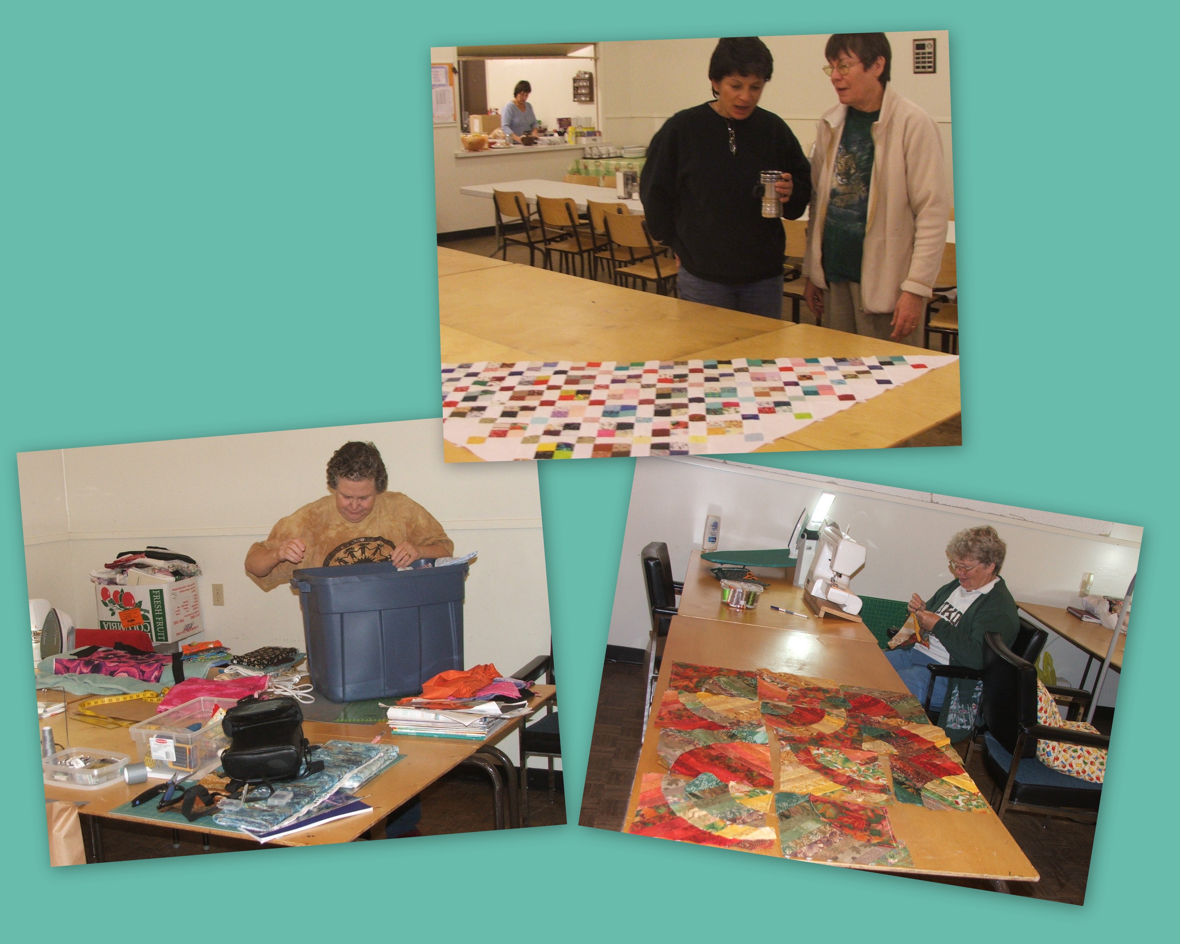 I also attended a three-day retreat with her, and met the other quilters in town.  What fun – and such a learning opportunity. We took our sleeping bags and air mattresses, had food catered by the local ladies, and sewed and talked and laughed.  It was like a three-day pajama party… although we did sleep more than we did in our teens.Collages