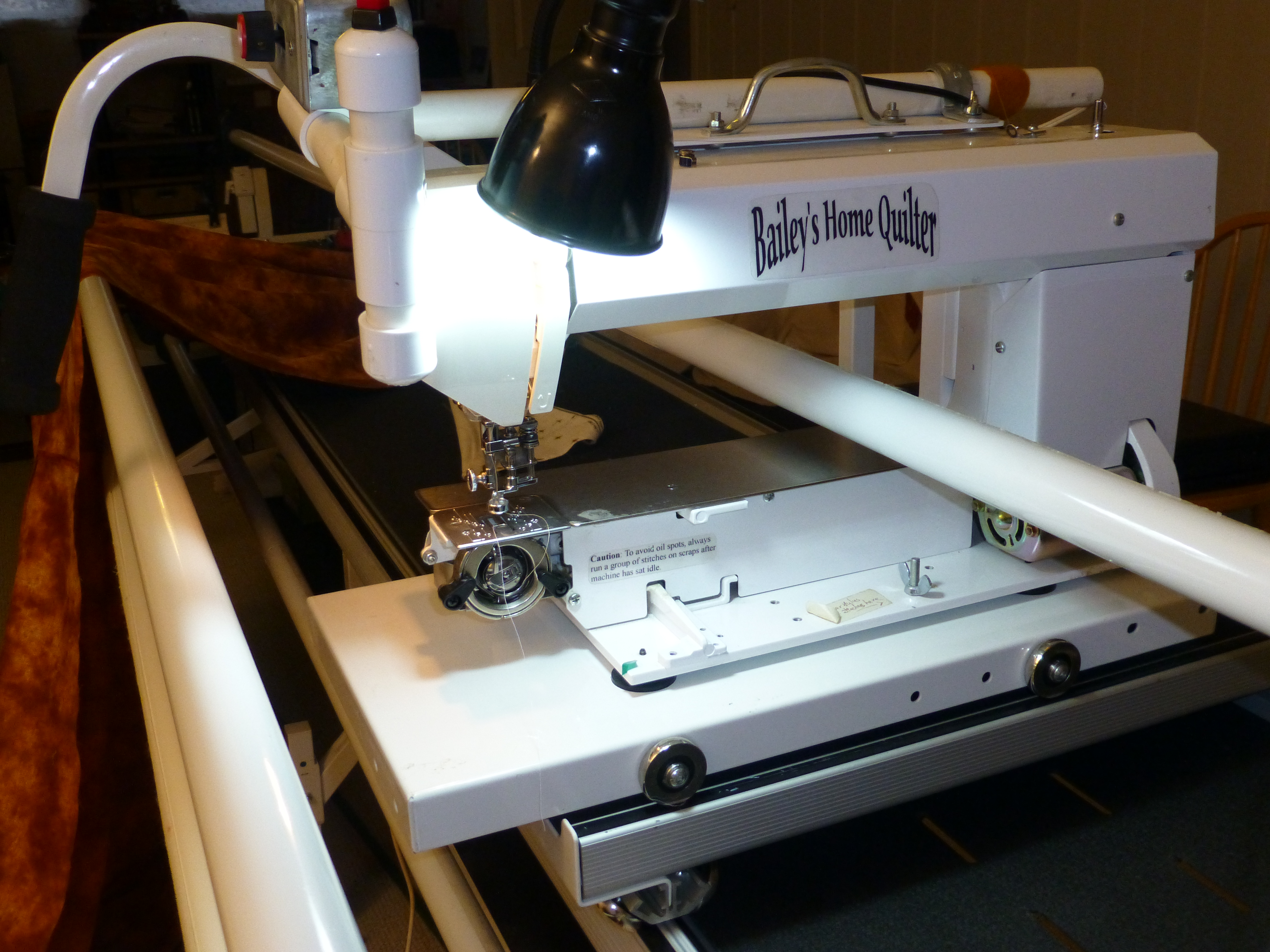 I “met” my Bailey Home Quilter through an online group as well.  I learned about the machines, and then a lady in Calgary was selling hers while we were home for summer holidays.  P1010009Wrapped in bubble wrap, it was light enough to take back to Kuwait in my suitcase. It is a purchase I have never regretted – and the online group is still there for support if I run into a problem.