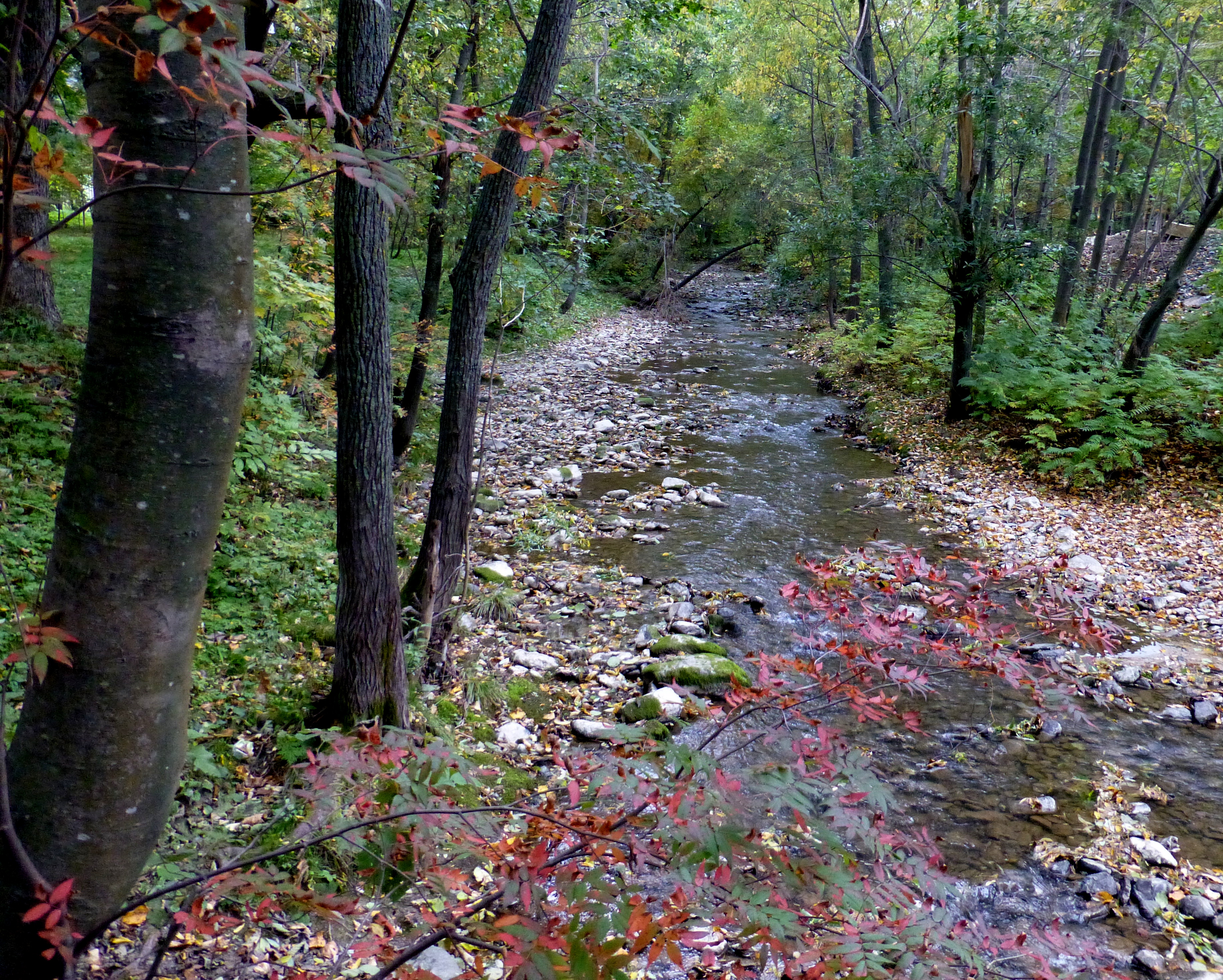 The stream is still meandering along, gurgling over the rocks – too busy to reflect the autumn colours.P1060924