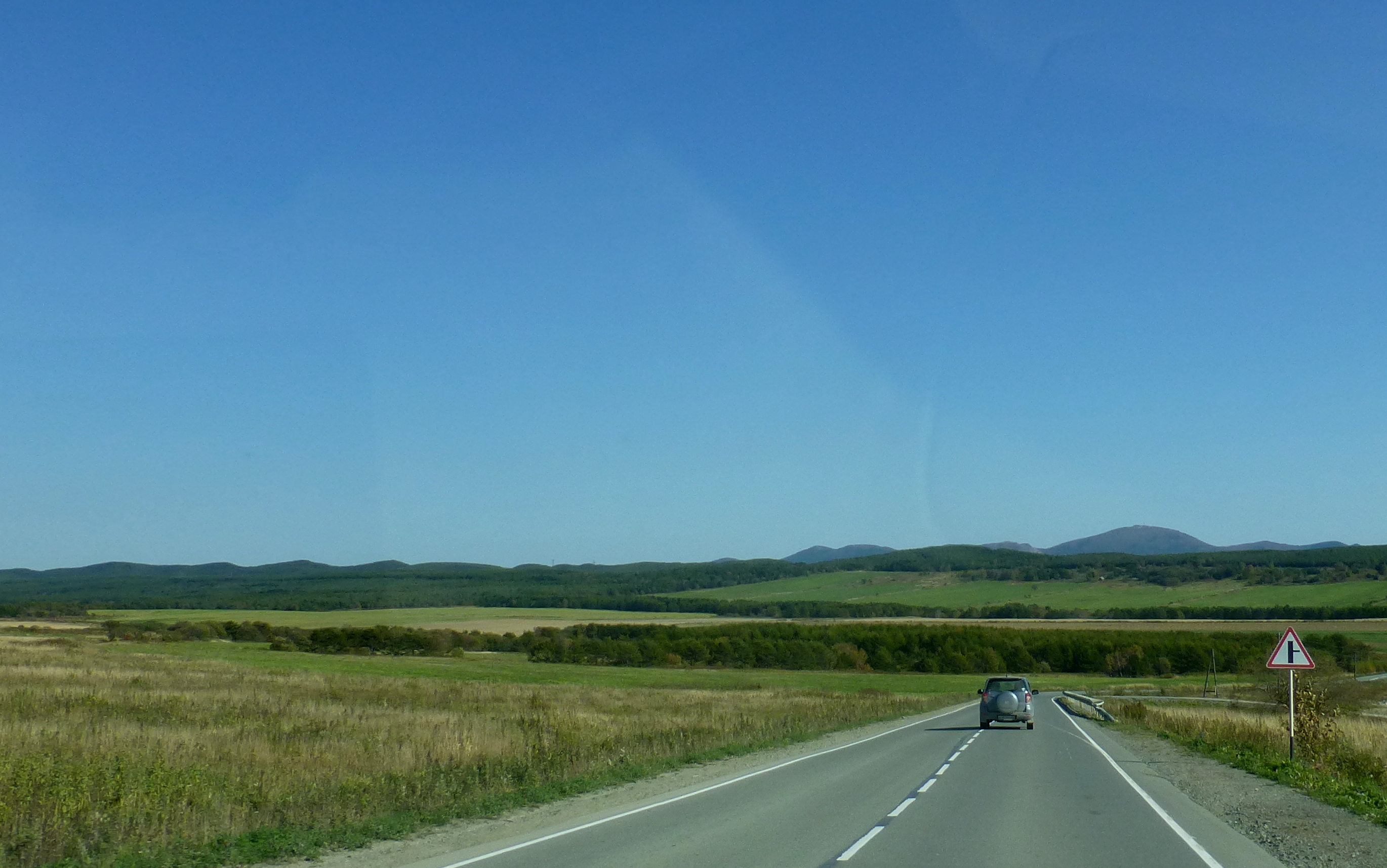 It was the first Sunday in October – a beautiful morning , sunny and fairly warm. The leaves were beginning to change colour – yellow and red mixed with the green of pines and spruces….. a beautiful day for a road trip. Snoopy was so excited – he loves to go in the car, and had not been in one since we moved here. Armed with my new Russian atlas of Sakhalin, we set out.