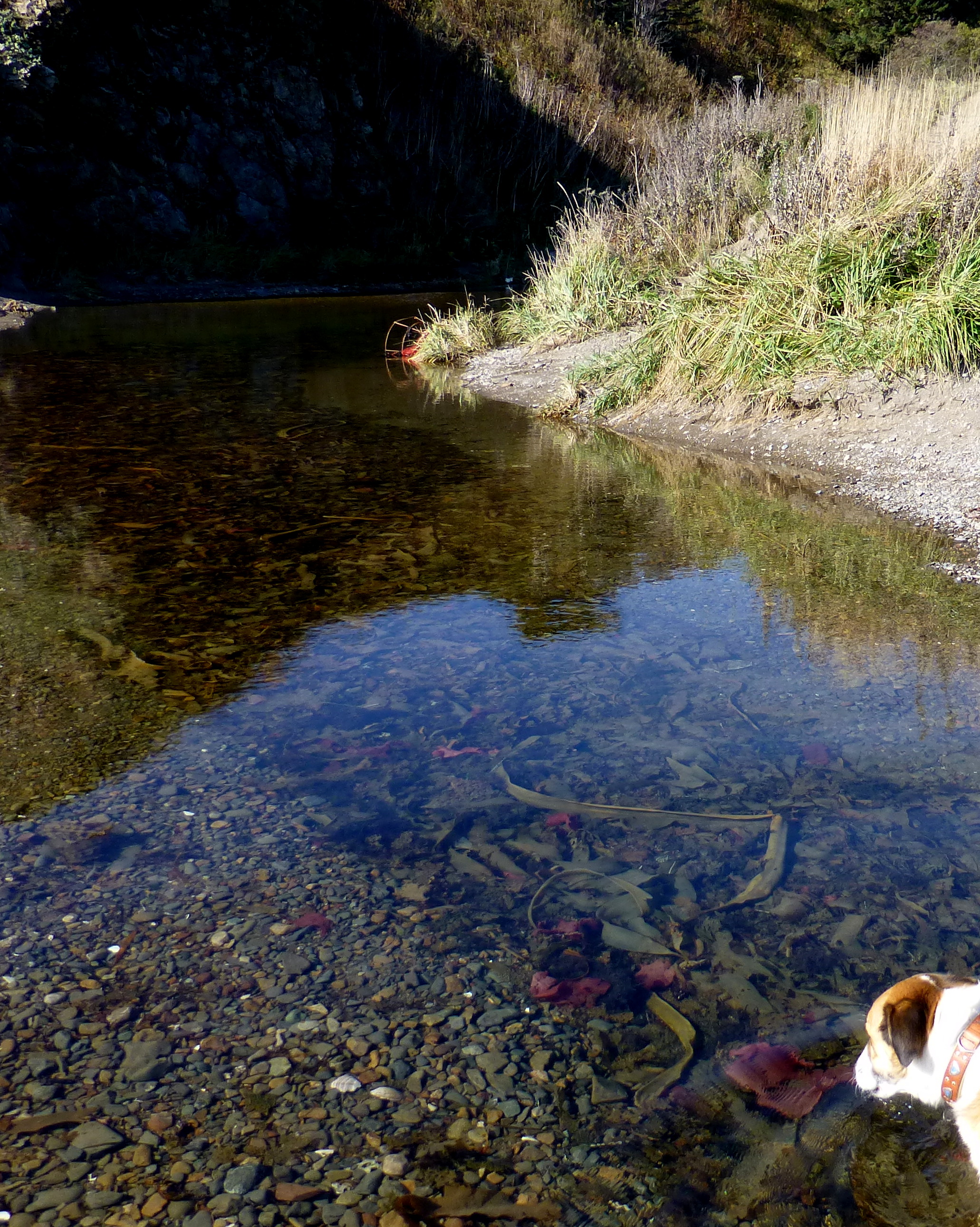 There is a fresh-water stream running into the sea here – Snoopy was glad of a drink. Just look at how clear the water is!