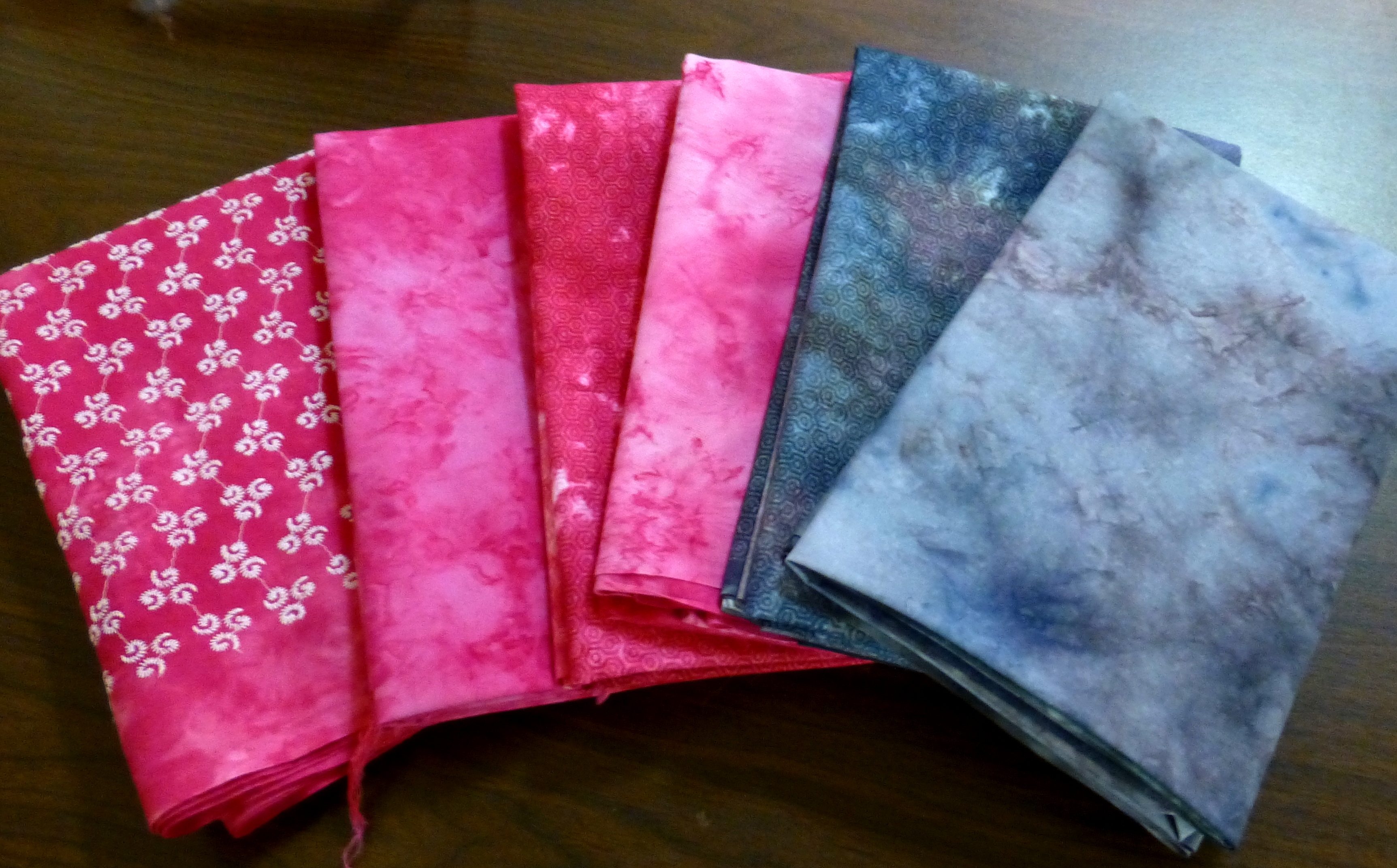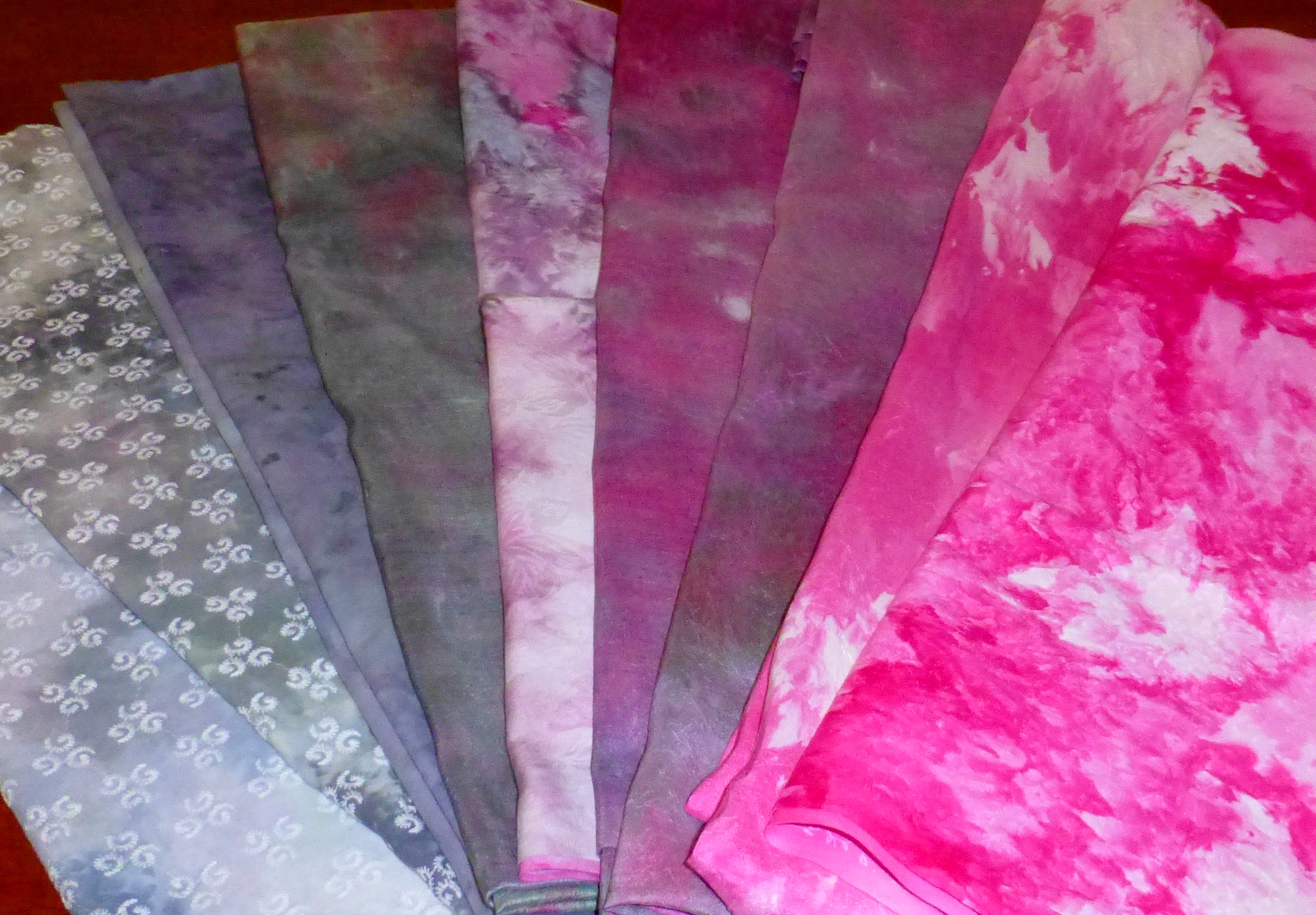 Now comes the task of using them in our quilting. To help with this, I have begun a class on Academy of Quilting’s website by Elizabeth Barton entitles “Dying to Design”. As well as tips on dyeing fabric, I’m hoping to get some good ideas on how to use these pieces and all the other beautiful ones I have collected over the years and done nothing with.