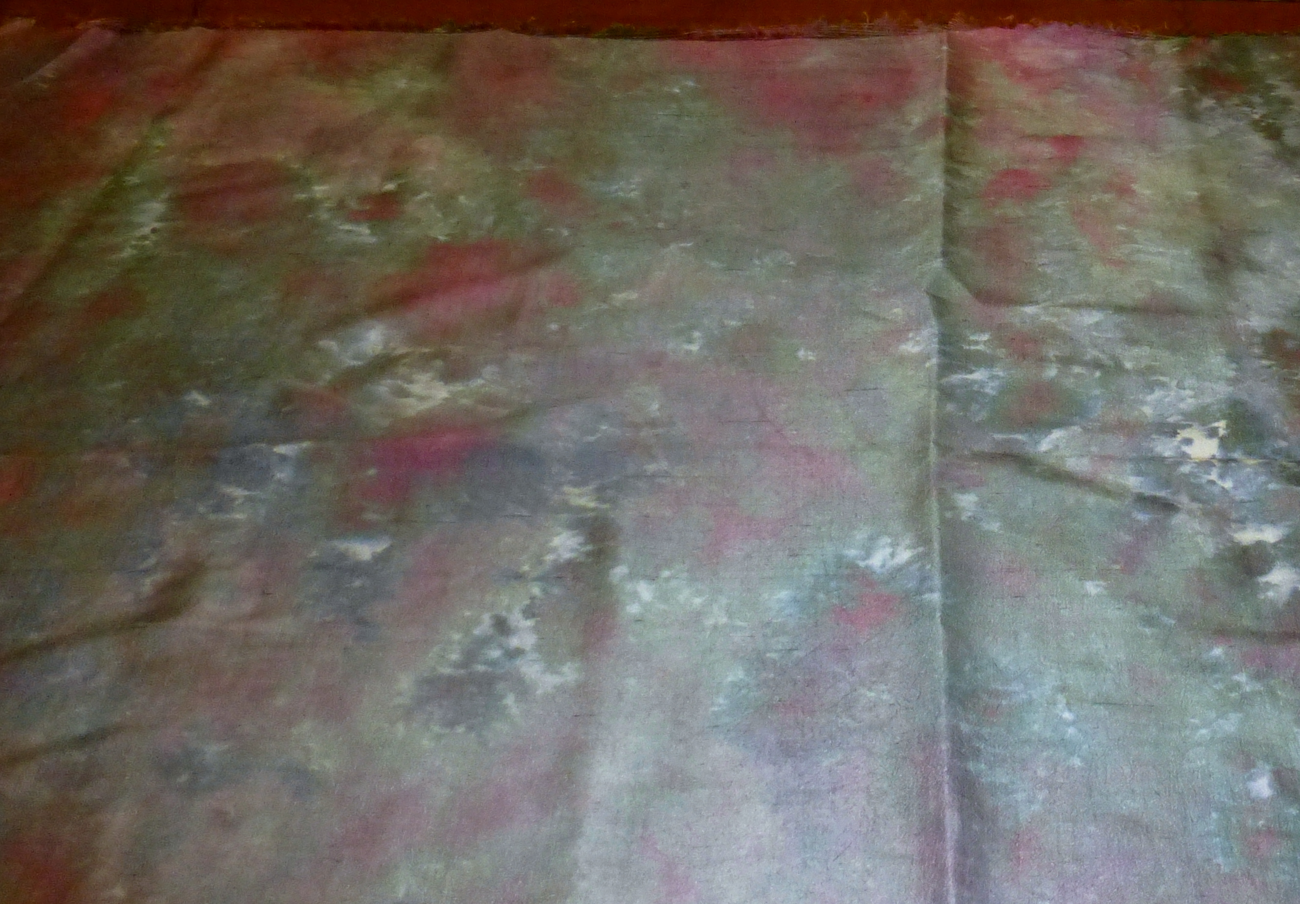Sue thought that it looked like a great experiment as well, and so we set about to find all the necessary ingredients before she embarked on the long trip from Kuwait. I had some dye, and one small package of fixative, so she searched for more, and also looked for fabric to dye. As well as some cotton, she bought two different lengths of silk.