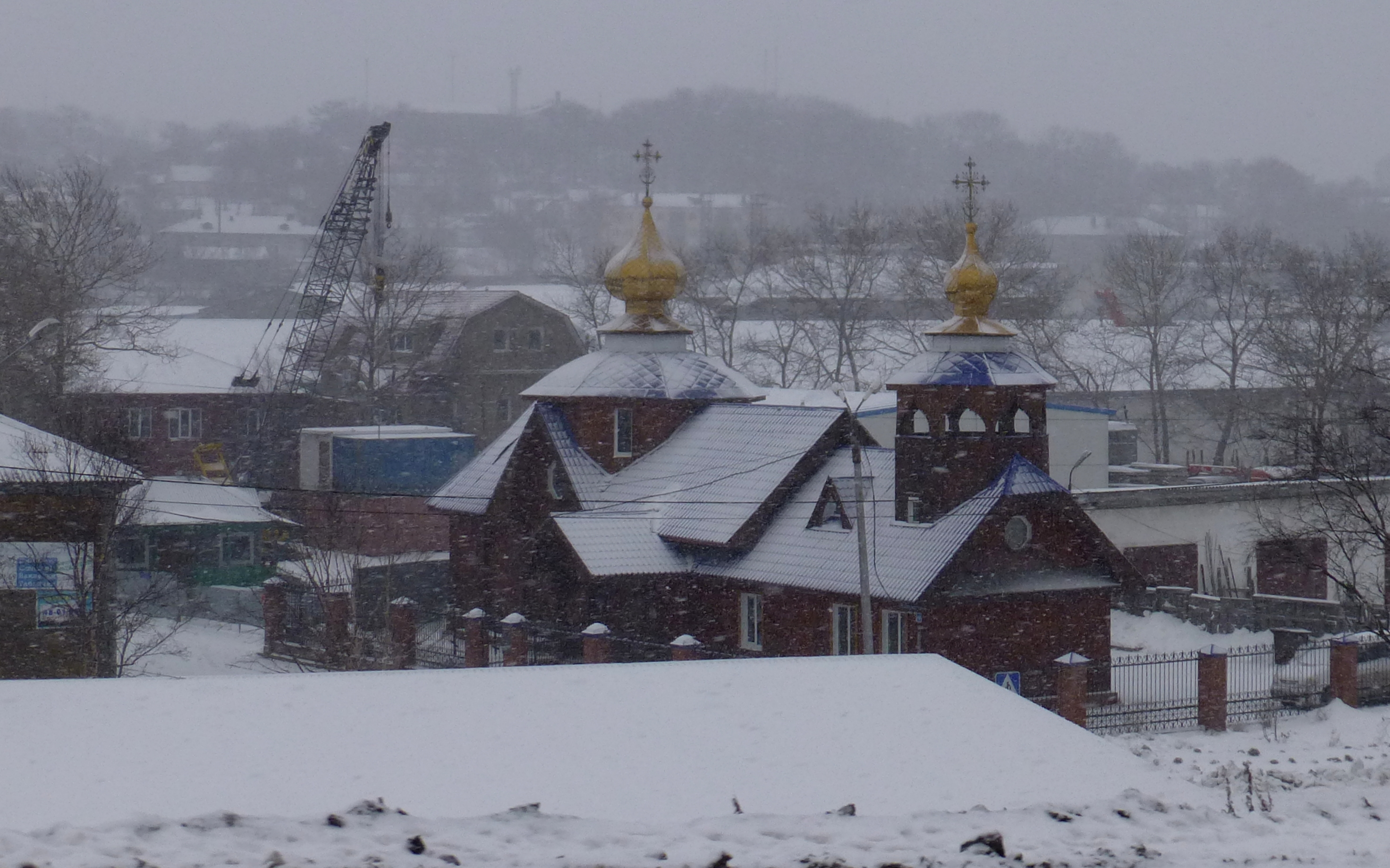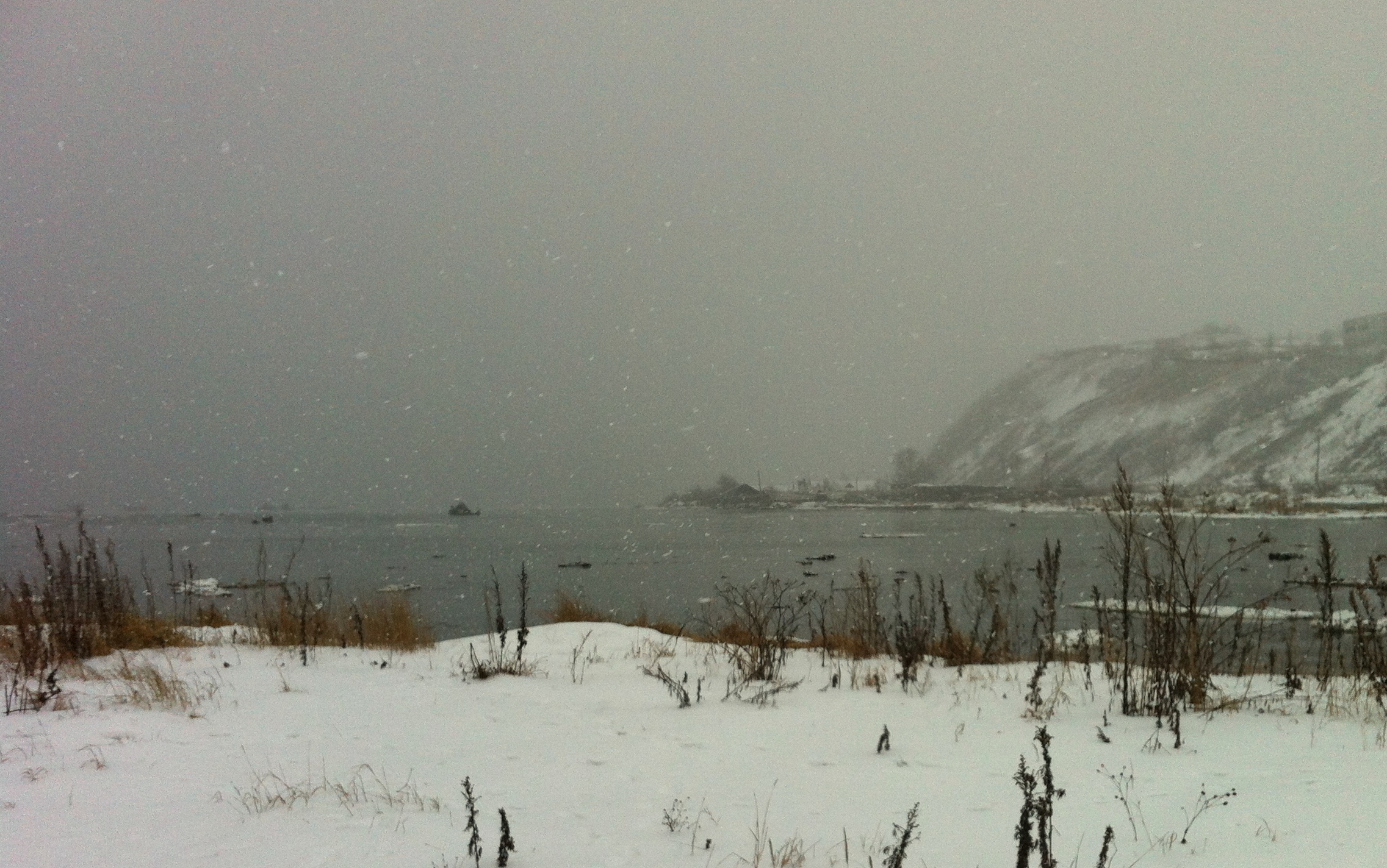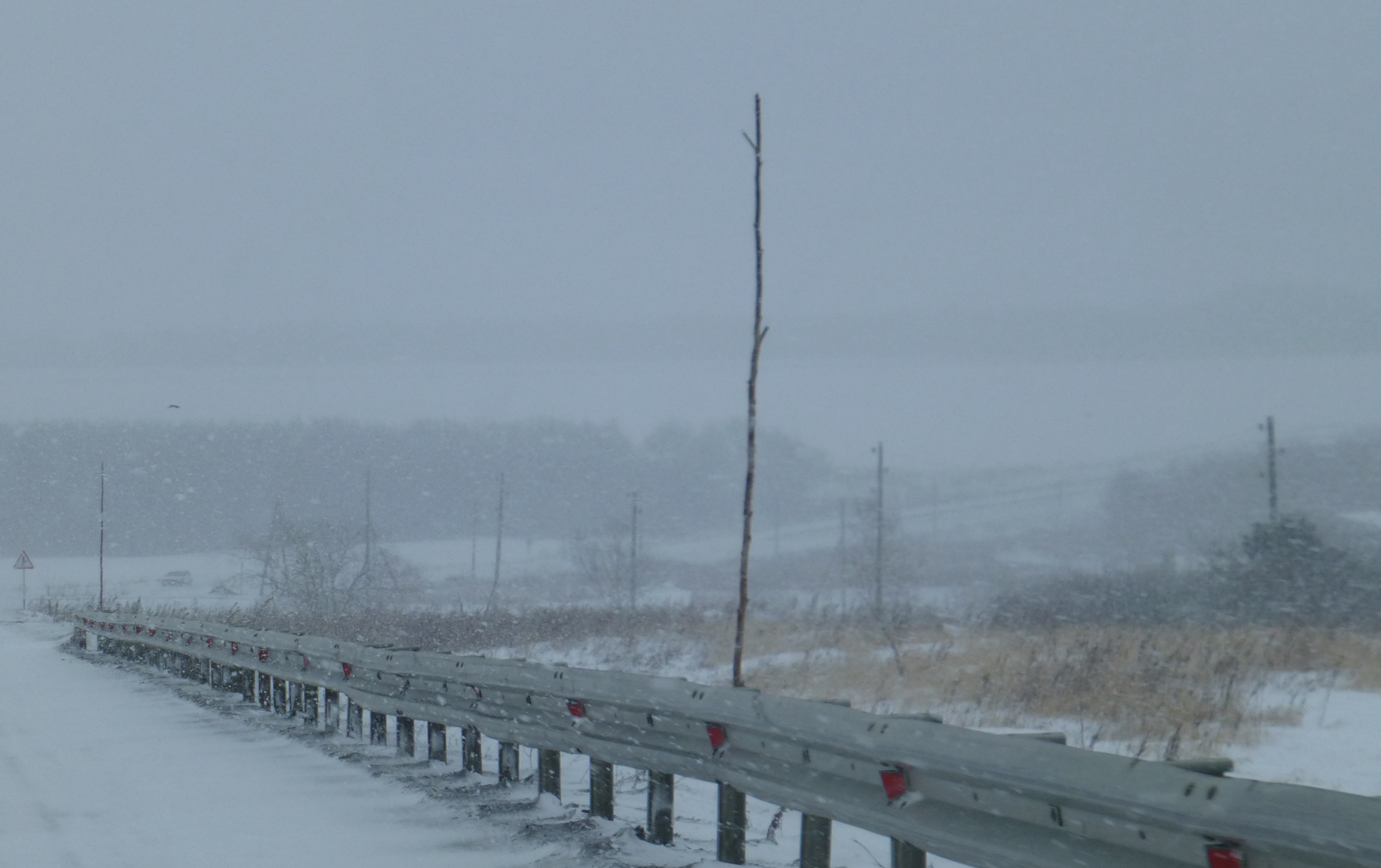 The first time we drove down to Korsakov, it was the end of September, and a brilliant, sunny autumn day. Now, in the dead of winter, it is an entirely different picture.