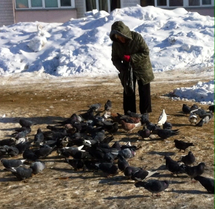 I was waiting at the bus stop in -18C weather when this older lady came with z bag full of bread scraps and began throwing them out to the many pigeons that are always clustered there in the sun. As she fed them, I found myself singing this song from “Mary Poppins”. It stayed in my head all afternoon.